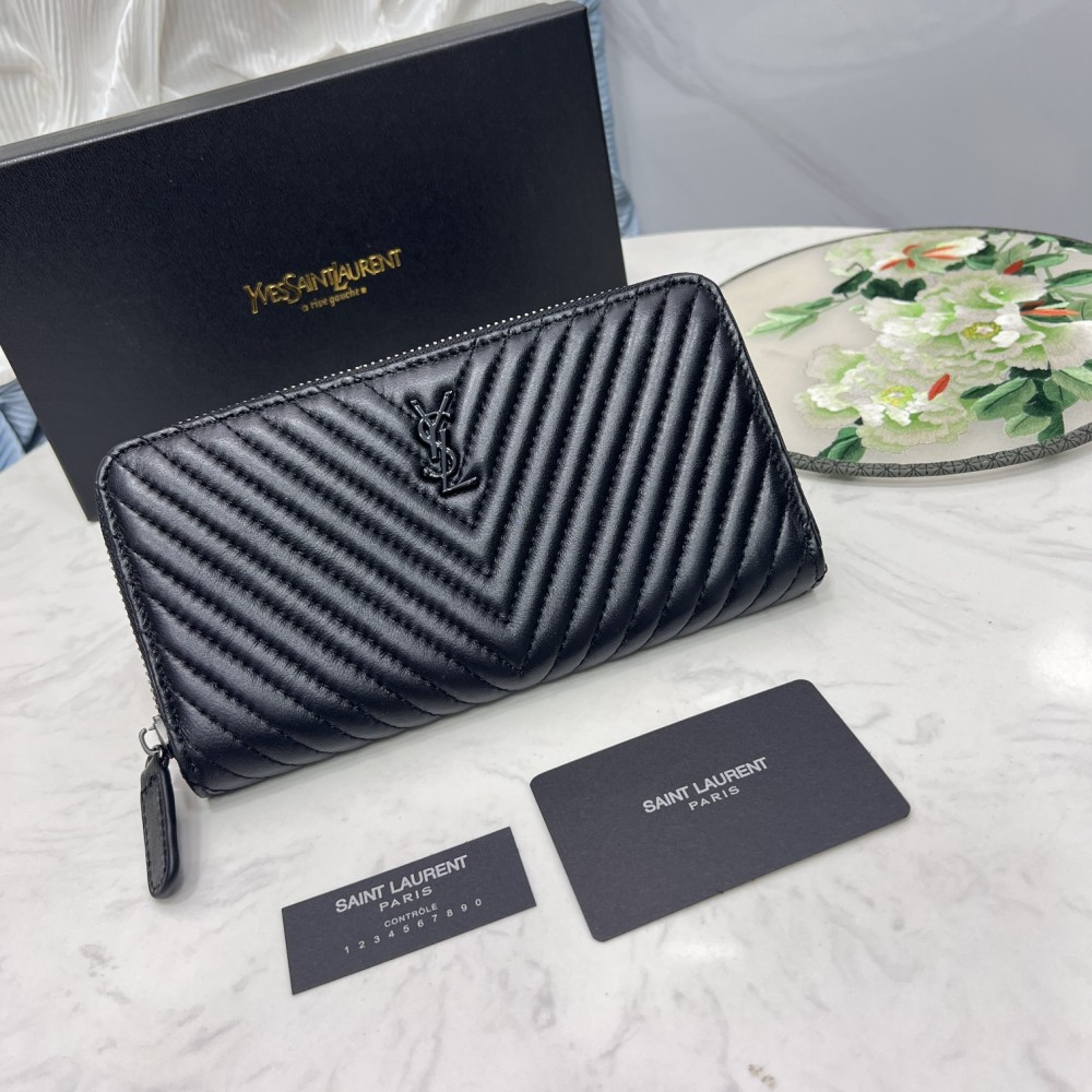 Saint Laurent YSL Caivar Zipper Long Wallet Purse(Replica)